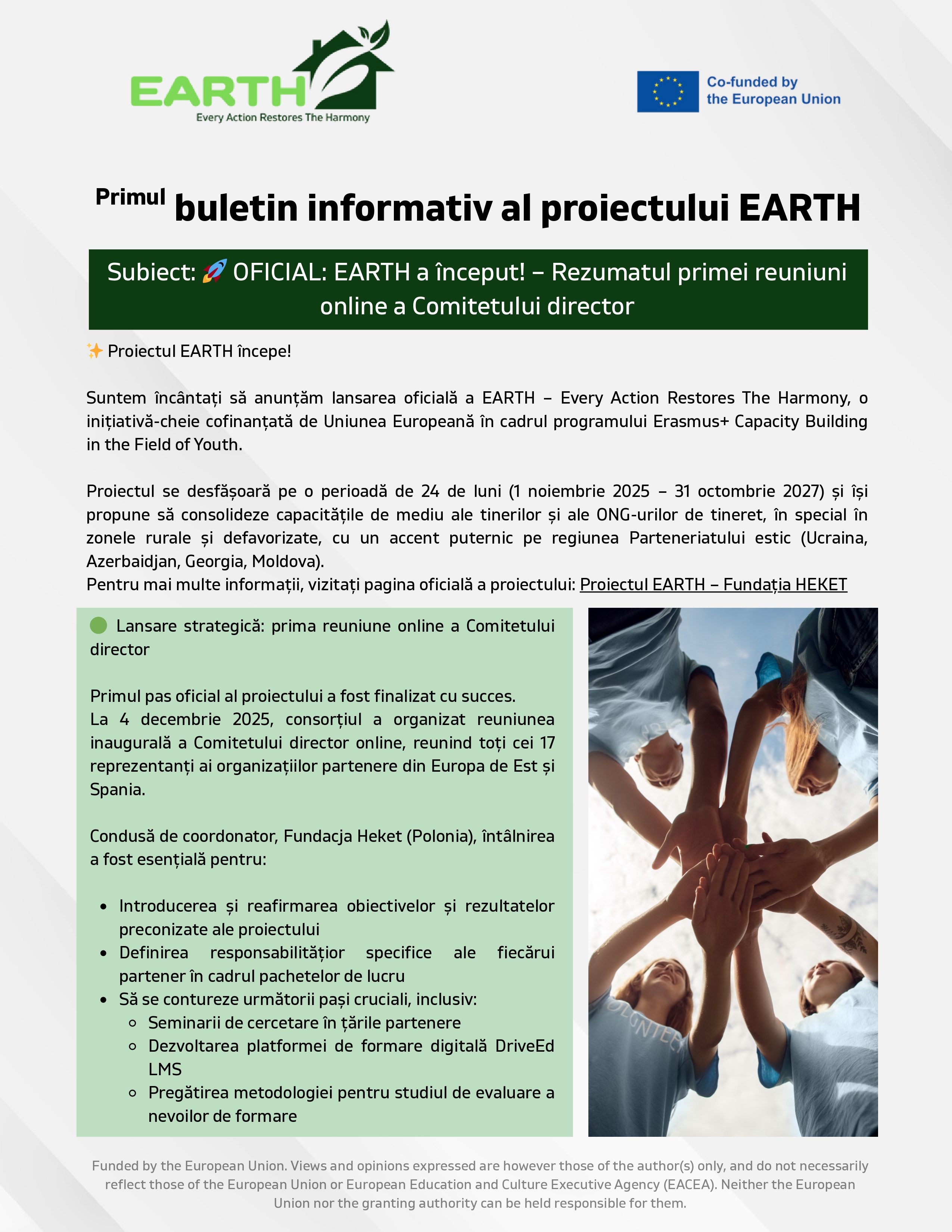 IDIS „Viitorul” implementează proiectul internațional EARTH “Every Action Restores The Harmony - Fiecare acțiune restabilește armonia”, în cadrul programului Erasmus+ - Consolidarea capacităților în domeniul tineretului.