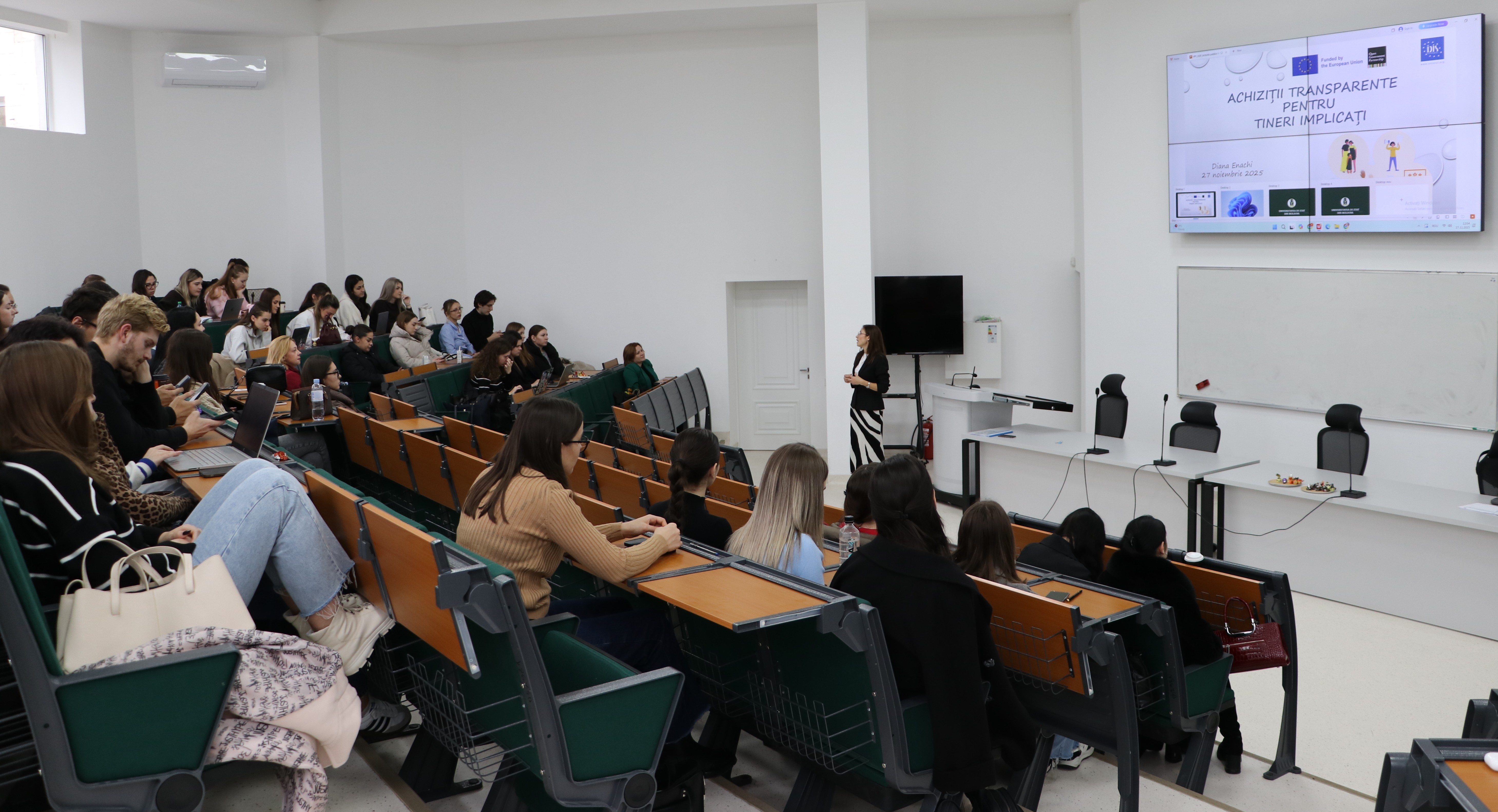 Aproape 90 de studenți ai anului întâi de studiu ai Academiei de Studii Economice (ASEM) au participat marți, 18 noiembrie 2025, la o lecție deschisă cu tema „Achiziții transparente pentru tineri implicați”. Evenimentul a fost organizat în cadrul proiectului „Guvernare deschisă pentru cetățeni implicați”, implementat de către IDIS „Viitorul” cu sprijinul Parteneriatului pentru Guvernare Deschisă Europa (OGP EU) prin intermediul Programului „UE pentru Integritate” în Parteneriatul Estic, finanțat de Uniunea Europeană (UE).