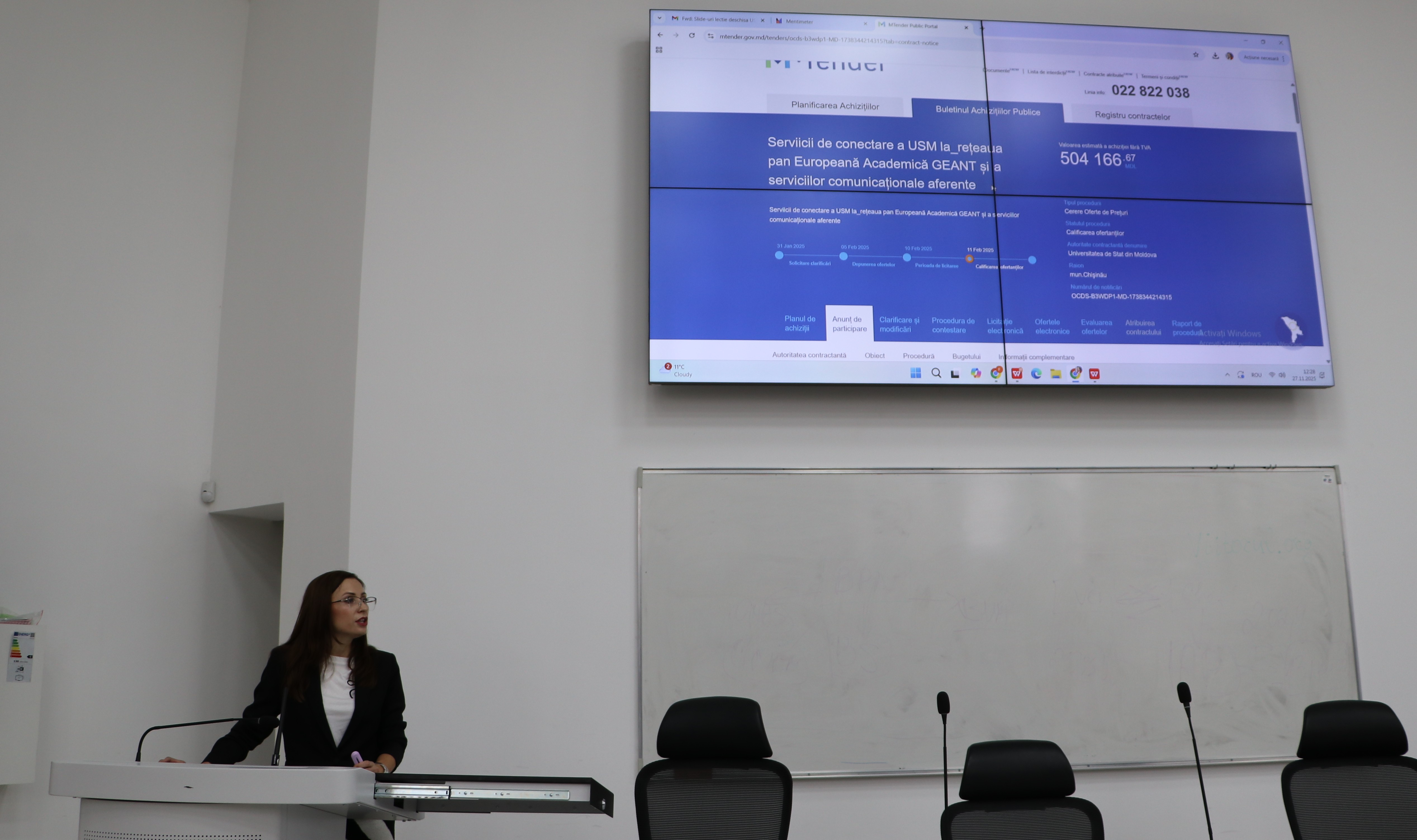Trainerul Diana Enachi, expertă în achiziții publice la IDIS „Viitorul”, a prezentat în cadrul sesiunilor aspectele legate de cadrul legal al achizițiilor publice, etapele procesului, pragurile și procedurile aplicabile, elaborarea documentației de atribuire, publicarea și desfășurarea achizițiilor în sistemul electronic, procedurile de atribuire a contractelor, mecanismele de contestare și alte elemente relevante.